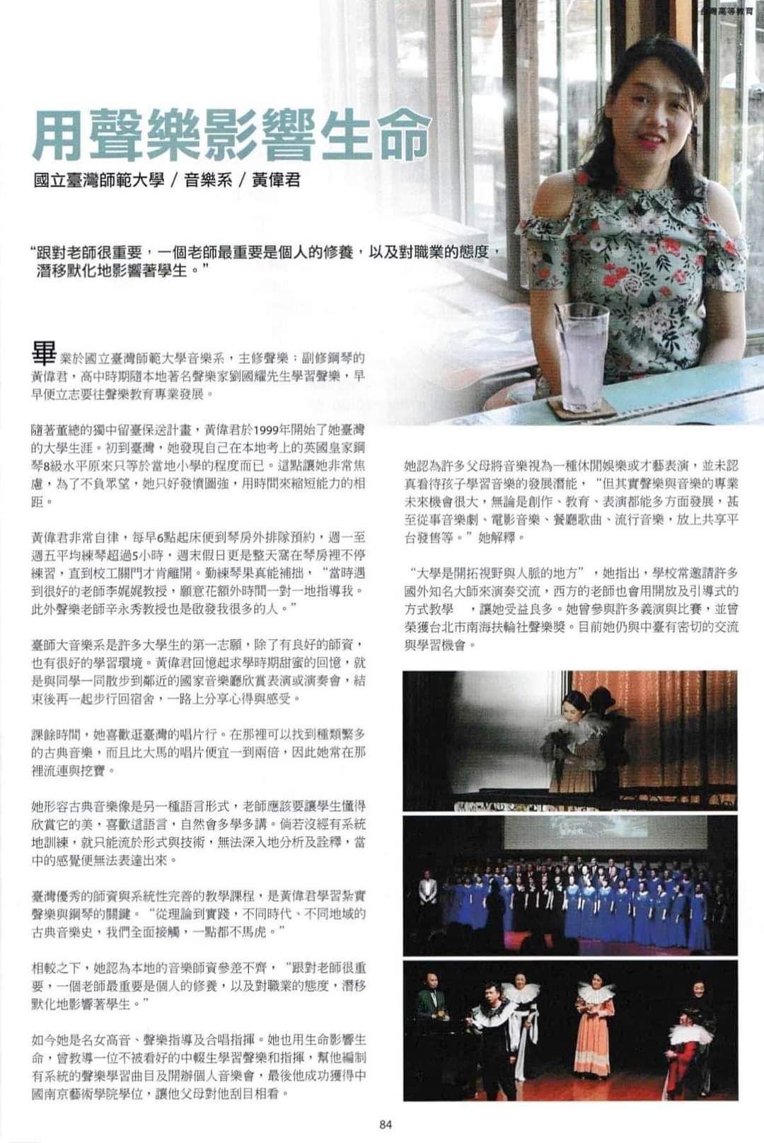 Wai Quan holds a degree from National Taiwan Normal University majoring in voice and minor in piano. The multitalented Quan has wide experience as vocalist, choir conductress, piano accompanist and judge.